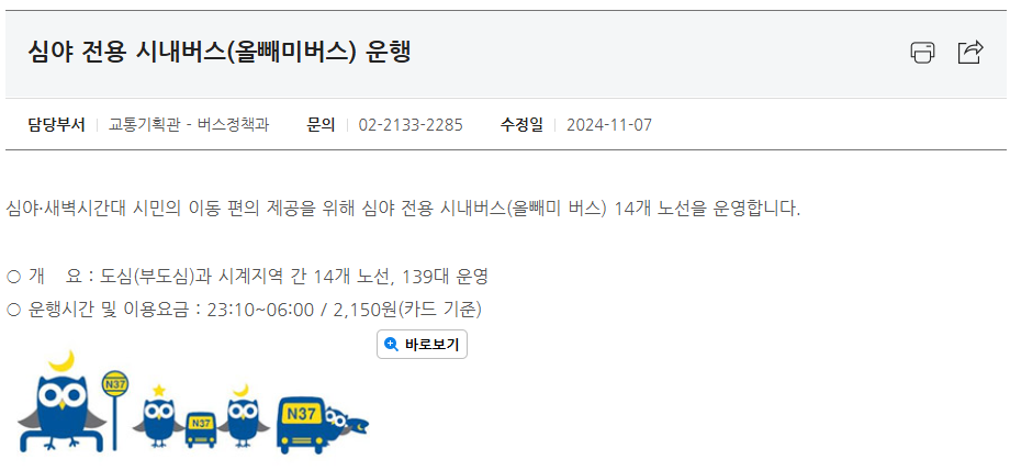 - 운행시간: 밤 11시 30분 ~ 새벽 6시