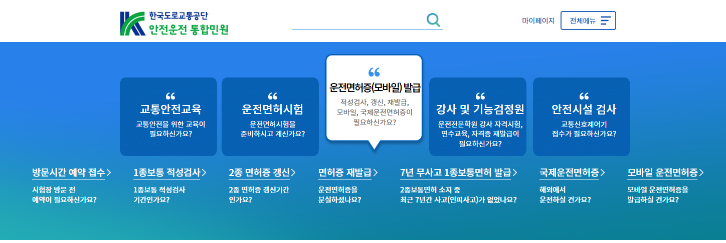 - 한국도로교통공단 공식 홈페이지(https://www.safedriving.or.kr/main.do) 방문