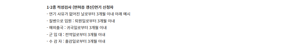 - 만료 90일 전부터 온라인 갱신 및 적성검사 신청 가능