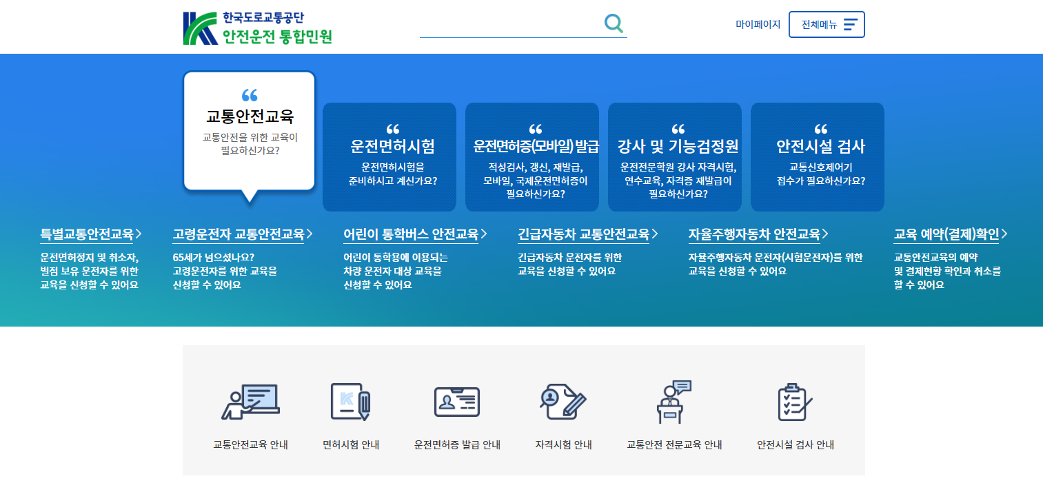 1. 사이트 접속: 도로교통공단 안전운전 통합민원 사이트(www.safedriving.or.kr)에 들어갑니다.