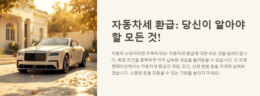이 정보를 통해 자동차세 환급을 놓치지 않고, 소중한 돈을 되찾아보세요! 🚗💸