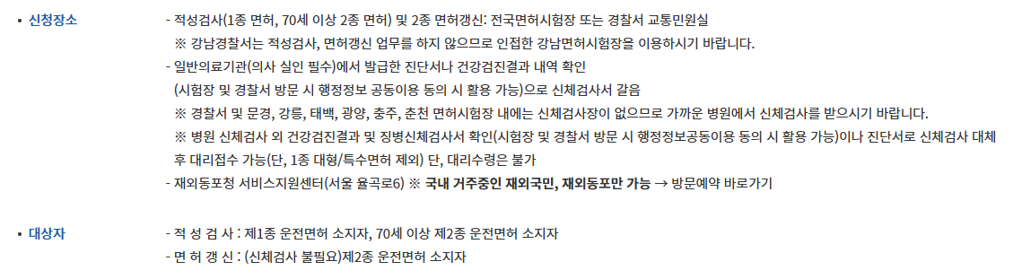 - 75세 이상: 매년 적성검사 필수
