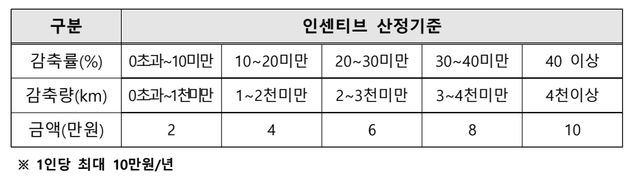 주행거리 감축 실적에 따른, 더 상세한 인센티브 기준은 다음과 같습니다.